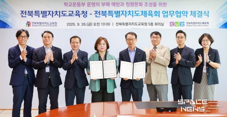 스페이스뉴스 스페이스뉴스 기자 | 전북특별자치도교육청과 전북특별자치도체육회가 공정하고 투명한 학교 운동부 환경 조성을 위해 손을 맞잡았다.