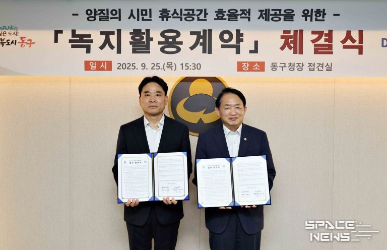 스페이스뉴스 스페이스뉴스 기자 | 인천 동구는 지난 25일 동원로엑스㈜(인천㈜ 대표이사 최안석)와‘녹지활용계약’을 체결했다고 밝혔다. 인천 최초로 진행된 이번 계약은 민간기업이 소유한 사유지를 주민에게 열린 녹지로 제공하는 새로운 방식의 민관 협력 모델이다.