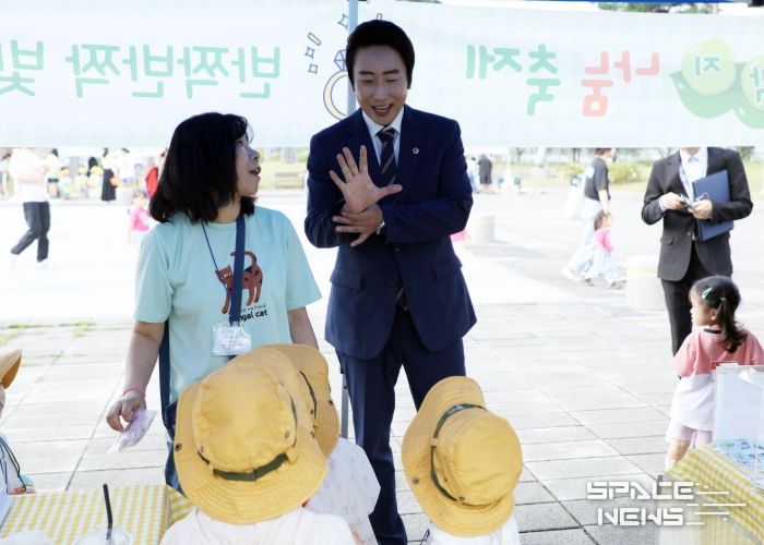 스페이스뉴스 스페이스뉴스 기자 | 세종특별자치시의회 임채성 의장은 26일 세종 금강수변공원에서 열린 세종공공형어린이집연합회 주최 ‘2025 푸른콩깍지 나눔축제’에 참석해 영유아와 학부모, 교사들과 함께 환경보호와 나눔의 의미를 공유했다.