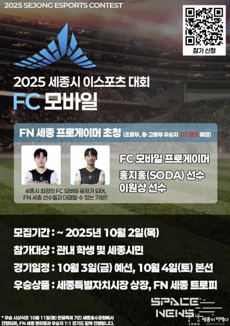 시는 이스포츠 연고 구단인 FN세종이 주관하는 ‘2025 세종시 이스포츠 경기대회’ 참가자를 내달 2일까지 모집한다고 밝혔다.