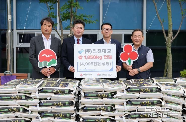 스페이스뉴스 스페이스뉴스 기자 | 인천시 중구는 ㈜인천대교가 민족 최대 명절인 추석을 맞아 쌀 10kg 185포(총 1,850kg)를 기탁했다고 밝혔다.