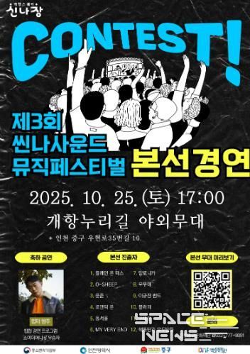 스페이스뉴스 스페이스뉴스 기자 | (재)인천중구문화재단은 오는 10월 25일 오후 5시 인천 중구 개항누리길 야외무대에서 ‘제3회 씬나사운드 뮤직 페스티벌’ 본선 경연을 개최한다고 밝혔다.