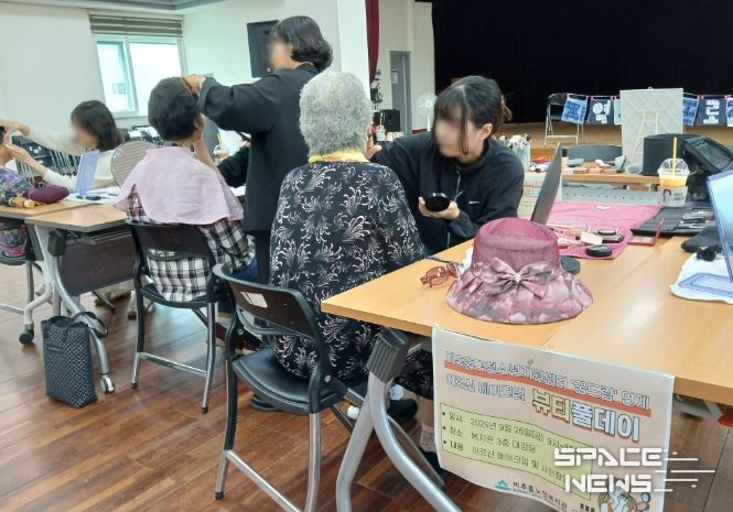 스페이스뉴스 스페이스뉴스 기자 | 인천 미추홀구학교밖청소년지원센터는 지난 26일 직업훈련을 받은 학교 밖 청소년 6명이 어르신을 대상으로 메이크업과 추억을 남길 수 있는 기념사진 촬영을 진행했다.