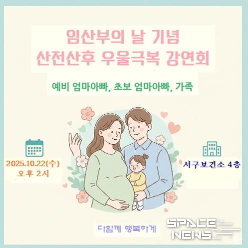 스페이스뉴스 스페이스뉴스 기자 | 인천 서구는 ‘제20회 임산부의 날’을 기념하여 임산부와 가족을 위한 ‘산전·산후 우울증 극복’이라는 주제로 서구보건소에서 특별 강좌를 개최한다고 밝혔다.