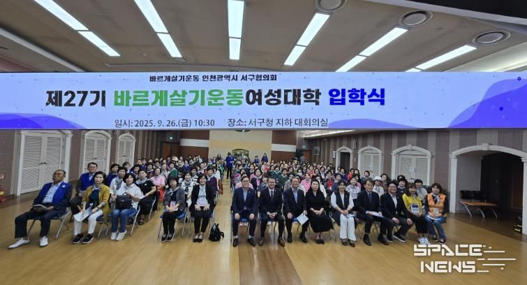 스페이스뉴스 스페이스뉴스 기자 | 바르게살기운동 인천 서구협의회는 9월 27일 서구청 대회의실에서 ‘제27기 바르게살기운동 서구여성대학 입학식’을 개최했다.