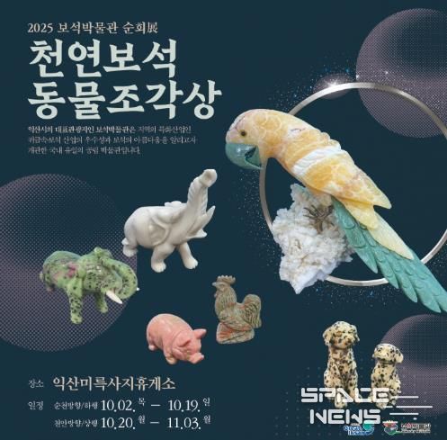 스페이스뉴스 스페이스뉴스 기자 | 익산시 보석박물관은 추석 연휴가 시작되는 10월 2일부터 11월 3일까지 익산미륵사지휴게소(양방향)에서 '천연보석 동물조각상' 순회전시를 진행한다.
