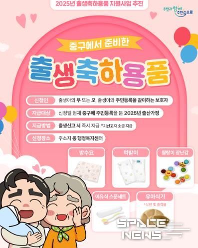 스페이스뉴스 스페이스뉴스 기자 | 대전 중구는 출산가정을 대상으로 출생축하용품 지원 사업을 지속적으로 추진하며, 아이 낳고 키우기 좋은 지역사회 조성에 힘쓰고 있다고 밝혔다.