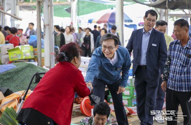 스페이스뉴스 스페이스뉴스 기자 | 우승희 영암군수가 30일 추석을 앞두고 영암5일시장 등 전통시장가 상가 등 민생 현장을 찾아 장바구니 물가동향을 살피고, 명절을 맞은 소상공인의 어려움과 장을 보러 온 영암군민의 이야기를 들었다.