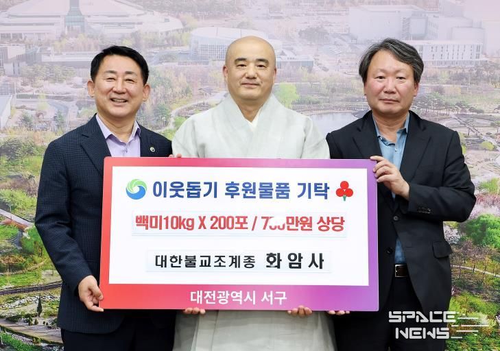 스페이스뉴스 스페이스뉴스 기자 | 대전 서구는 지난 30일 화암사로부터 백미 10kg 200포(750만 원 상당)를 기탁받았다고 1일 전했다.