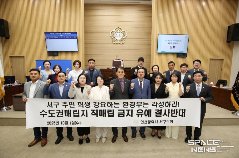 스페이스뉴스 스페이스뉴스 기자 | 인천광역시 서구의회는 10월 1일 제276회 임시회 제2차 본회의에서'수도권매립지 직매립 금지 2년 유예 철회 및 원안 시행 촉구 결의안'을 만장일치로 채택했다. 이번 결의안은 심우창 의원이 대표 발의하고, 나머지 19명의 의원이 찬성에 참여하여 총 20명의 의원이 뜻을 함께했다.
