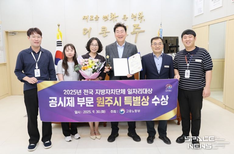스페이스뉴스 스페이스뉴스 기자 | 원주시는 지난 30일 청주 오스코에서 열린 고용노동부 주관 ‘2025 전국 지방자치단체 일자리대상’ 공시제 부문에서 특별상을 수상했다. 지난해 우수상에 이어 2년 연속 장관상을 받으며, 일자리창출 분야에서 전국적으로 성과를 인정받았다.