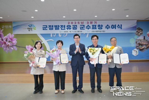 스페이스뉴스 스페이스뉴스 기자 | 영덕군은 군정 발전에 이바지한 군민과 공무원들의 노고를 격려하고, 군정 운영에 있어 긍정적 성과를 널리 확산하기 위해 지난 1일 올해 3분기 군정 발전 유공자에 대한 표창 수여식을 개최했다.