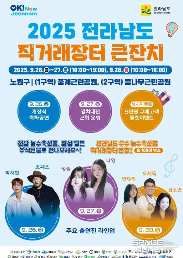 스페이스뉴스 스페이스뉴스 기자 | 전남 영암군은 지난 9월 26일부터 28일까지 서울시 노원구 중계근린공원에서 열린'2025 전라남도 직거래장터 큰잔치'에 참여해 대표 농특산물인 무화과, 배, 멜론을 선보이며 총 1천200만 원의 판매 실적을 거뒀다고 29일 밝혔다.