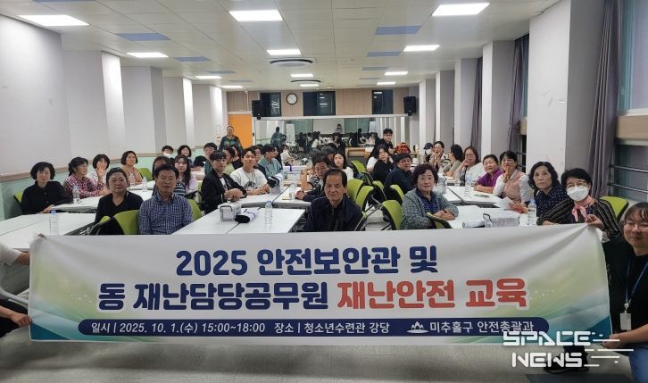 스페이스뉴스 스페이스뉴스 기자 | 인천 미추홀구는 지난 1일 미추홀구청소년수련관에서 안전 보안관 및 동 재난 담당 공무원을 대상으로 ‘재난 안전교육’을 실시했다.