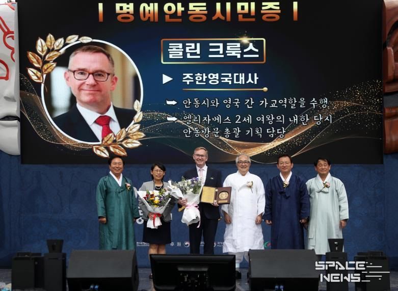 스페이스뉴스 스페이스뉴스 기자 | 안동시는 지난 10월 3일 열린 제23회 ‘안동의 날’ 기념식에서 콜린 제임스 크룩스(Colin James Crooks) 주한영국대사에게 명예안동시민증을 수여했다고 밝혔다.