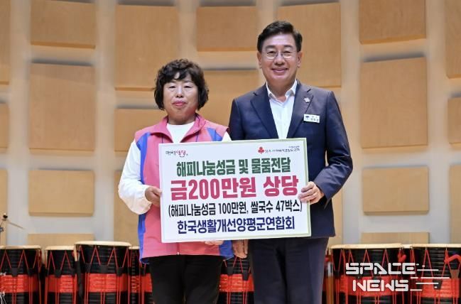 스페이스뉴스 스페이스뉴스 기자 | 한국생활개선양평군연합회는 지난 9월 30일부터 10월 1일까지 강릉 한국여성수련원에서 열린 ‘2025년 생활개선양평군연합회 한마음대회’에서 쌀국수 47박스와 현금 100만 원, 총 200만 원 상당의 해피나눔성금을 기탁했다고 밝혔다.