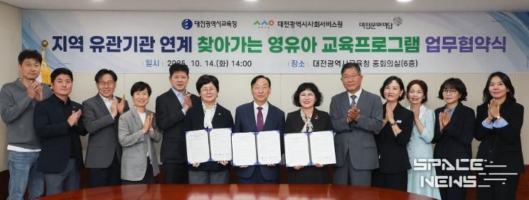 스페이스뉴스 스페이스뉴스 기자 | 대전시교육청은 10월 14일 대전광역시사회서비스원 및 대전문화재단과'지역 유관기관 연계 찾아가는 영유아 교육프로그램'운영 업무협약을 체결했다고 밝혔다.