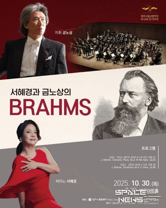 스페이스뉴스 스페이스뉴스 기자 | 원주시립교향악단은 오는 30일 오후 7시 30분, 백운아트홀에서 제194회 정기연주회 ‘서혜경과 금노상의 브람스(BRAHMS)’를 개최한다.