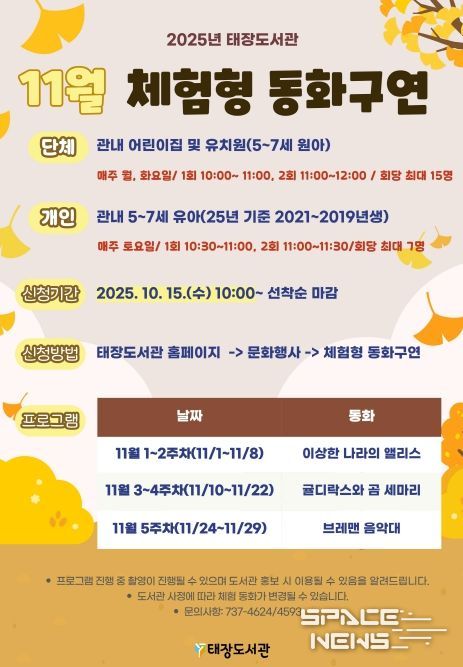 자세한 사항은 태장도서관으로 문의하면 된다.
