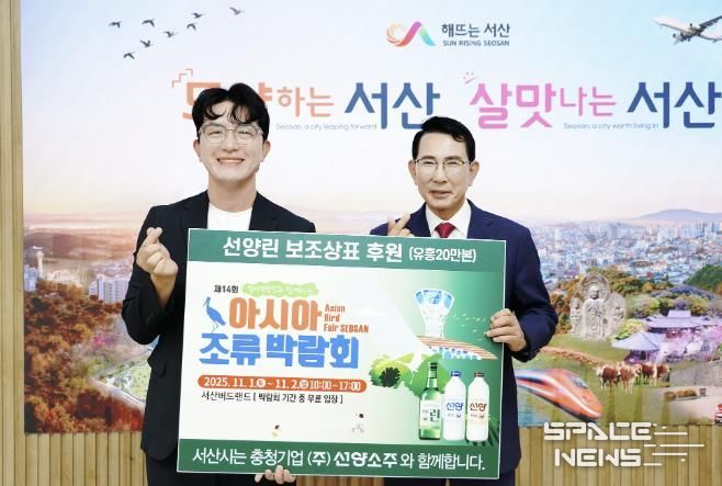 이완섭 서산시장은 “제14회 아시아조류박람회 성공 개최에 힘을 모아주신 ㈜선양소주에 감사의 말씀을 드린다”라며 “서산 천수만의 생태적 가치와 아름다움을 세계에 알리고, 철저한 안전관리로 모두가 즐거운 박람회를 만들겠다”라고 말했다.