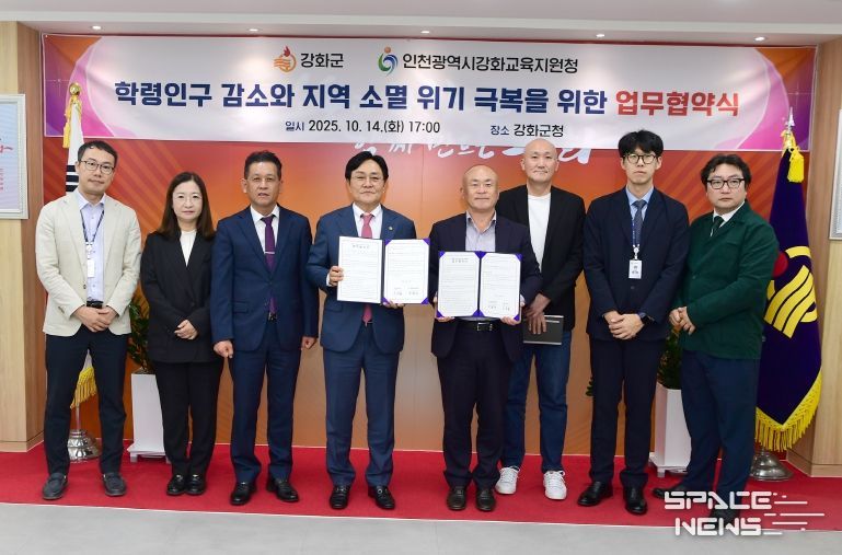 스페이스뉴스 스페이스뉴스 기자 | 강화군은 지난 14일, 강화교육지원청과 ‘학령인구 감소 및 지역 소멸 위기 극복을 위한 업무협약’을 체결했다.