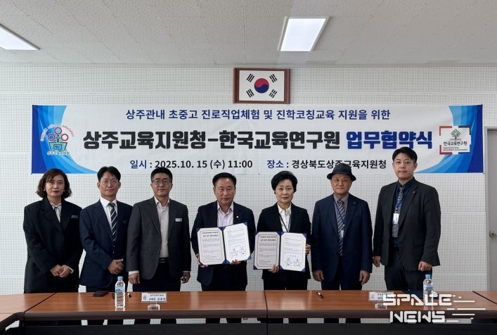 스페이스뉴스 스페이스뉴스 기자 | 경상북도상주교육지원청은 10. 15. 11:00, 교육지원청 2층 소회의실에서 『2025학년도 행복교육 실현을 위한 업무협약(MOU) 체결식』을 주관하고, 한국교육연구원과 함께 지역 학생들의 미래 역량 강화를 위한 공동 협력에 나섰다.