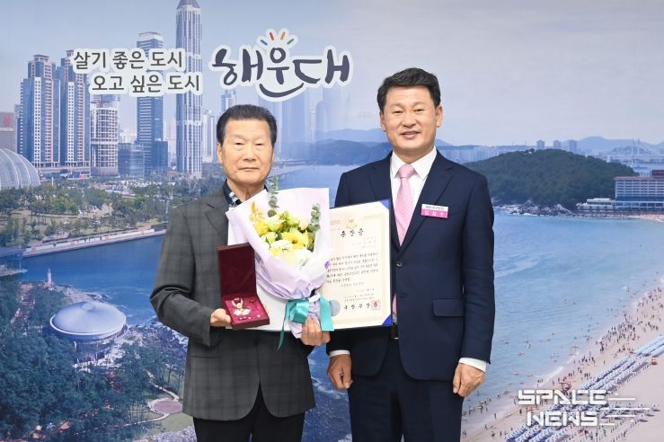 스페이스뉴스 스페이스뉴스 기자 | 해운대구는 지난 15일, 6‧25전쟁에 참전해 공을 세운 故 김용주 참전용사의 화랑무공훈장을 유족인 동생 김용범 씨에게 국방부장관을 대신해 전수했다.