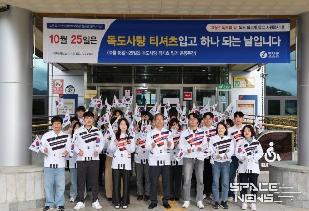 스페이스뉴스 스페이스뉴스 기자 | 영양군은 10월 24일 오전 독도의 날을 기념해 군청사 입구에서 오도창 영양군수를 포함한 공직자 60여 명이 참석한 가운데 ‘독도 사랑 티셔츠 입기 운동’행사를 진행했다.