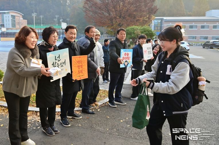 스페이스뉴스 스페이스뉴스 기자 | 이남철 고령군수는 2026학년도 대학수학능력시험일인 13일 이른 아침부터 고사장이 마련된 대가야고등학교를 찾아 수험생을 격려했다.