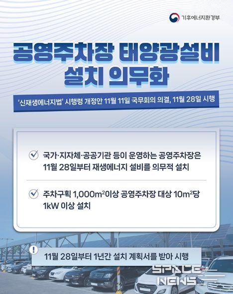 스페이스뉴스 스페이스뉴스 기자 | ■ 공영주차장 태양광설비 설치 의무화