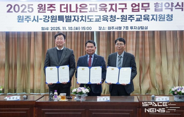 스페이스뉴스 스페이스뉴스 기자 | 강원특별자치도교육청은 원주시, 원주교육지원청과 11월 18일 원주시청에서 ‘원주 더나은교육지구 연장지정 업무협약’을 체결했다.