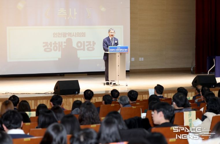 스페이스뉴스 스페이스뉴스 기자 | 인천광역시의회 정해권 의장(국·연수구1)은 18일 청학문화센터 청학아트홀에서 열린 ‘2025 인천광역시 사회복지관의 날 기념식’에 참석해 사회복지관 종사자들을 격려했다.
