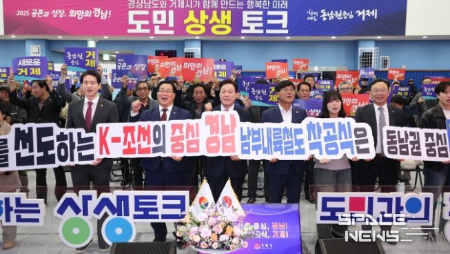 스페이스뉴스 스페이스뉴스 기자 | 경상남도는 18일 거제 반다비체육센터에서 열린 ‘도민 상생토크’에서 기업혁신파크, 광역교통망, 미래산업 등을 연계한 성장전략을 제시하며 지원 의지를 밝혔다.