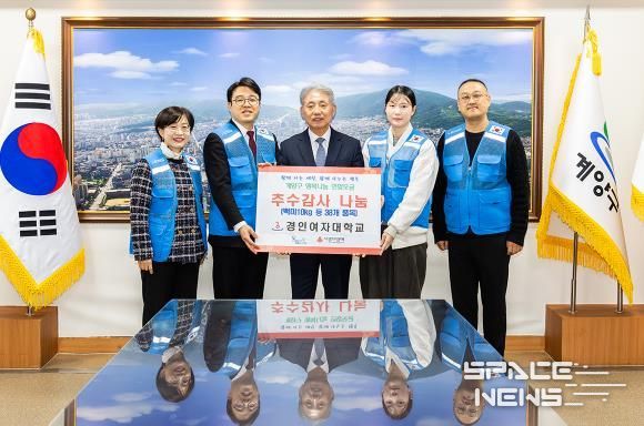 스페이스뉴스 스페이스뉴스 기자 | 인천광역시 계양구는 18일 경인여자대학교가 추수감사절을 맞아 취약계층 이웃을 돕기 위한 물품을 기탁했다고 밝혔다.