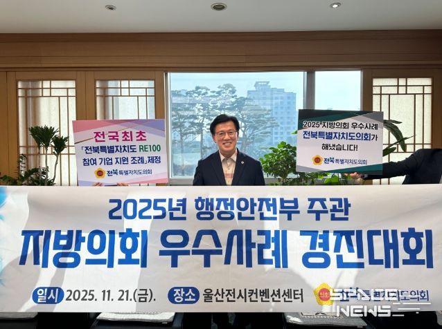 스페이스뉴스 스페이스뉴스 기자 | 전북특별자치도의회가 지난 21일 울산전시컨벤션센터에서 열린 행정안전부 주관 ‘2025년 지방의회 우수사례 경진대회’에서 본선에 진출해 수상하는 영예를 안았다.