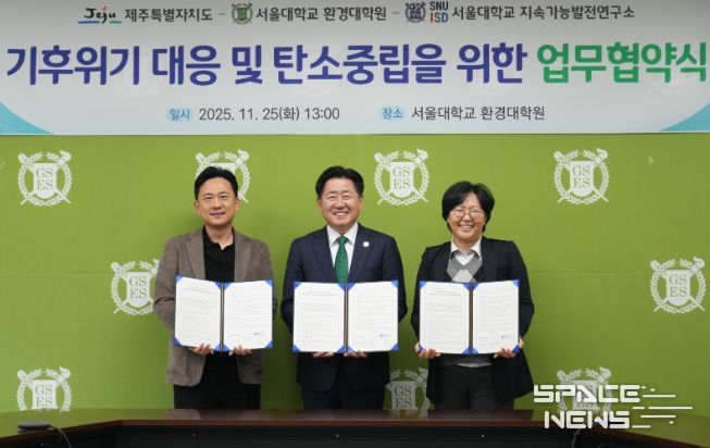 제주도는 25일 오전 서울대학교에서 서울대 환경대학원, 지속가능발전연구소와 ‘기후위기 대응 및 탄소중립을 위한 지속가능 정책 연구·자문 및 교류 업무협약’을 체결했다.