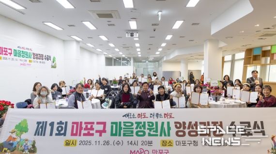 스페이스뉴스 스페이스뉴스 기자 | 박강수 마포구청장은 11월 26일 오후 2시 20분, 마포구청 12층 중강당에서 열린 ‘제1회 마포구 마을정원사 수료식’에 참석해 양성과정을 마친 주민들에게 직접 수료증을 수여하고 활동을 격려했다.