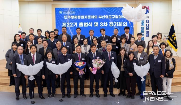 스페이스뉴스 스페이스뉴스 기자 | 민주평화통일자문회의 부산영도구협의회(협의회장 김창석)는 지난 11월 26일 영도구청 대강당에서 ‘제22기 출범식 및 2025년 3차 정기회의'를 개최했다. 이날 행사에는 민주평통 박사익 부산부의장, 김기재 영도구청장, 최찬훈 영도구의회 의장, 자문위원, 초청내빈 등 100여 명이 참석했다.