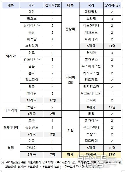‘해외 청소년 한국어교육 연수’는 각국의 정규 학교에서 한국어를 배우는 학생들이 한국에 대한 이해를 넓히고 한국어 학습 동기를 고취할 수 있도록 2019년부터 매년 운영되는 과정이다. 올해는 르완다·벨라루스·튀르키예 등 처음 참여하는 국가들을 포함해 총 36개국에서 인솔교사 포함 95명이 참석했다.