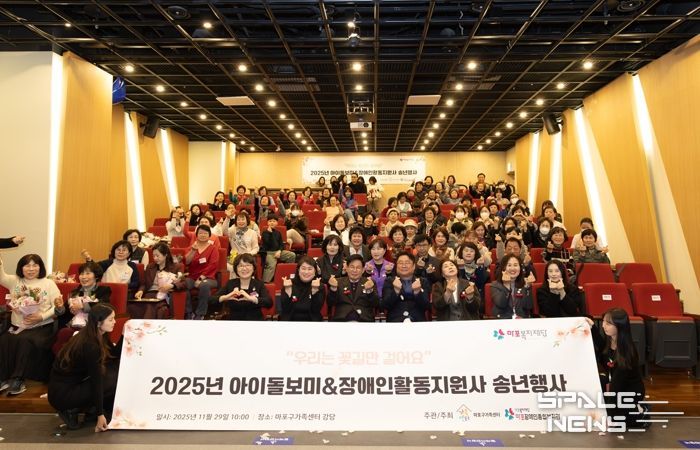 스페이스뉴스 스페이스뉴스 기자 | 박강수 마포구청장은 11월 29일 오전 10시, 마포구가족센터 지하 1층 강당에서 마포구가족센터와 마포장애인종합복지관 주최·주관으로 열린‘2025년 아이돌보미·장애인활동지원사 연말 송년행사’에 참석했다.