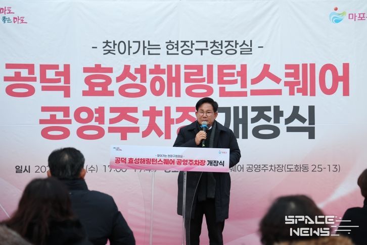 스페이스뉴스 스페이스뉴스 기자 | 박강수 마포구청장은 12월 3일 오후 5시, 공덕역 10번 출구 앞 광장에서 열린 ‘공덕 효성해링턴스퀘어 공영주차장 개장식’에 참석해 시설 개장을 축하했다.