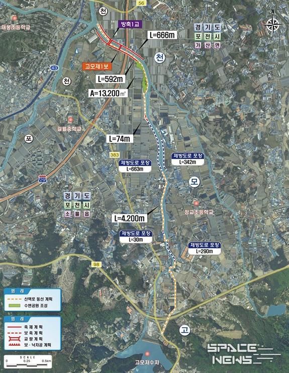 스페이스뉴스 스페이스뉴스 기자 | 경기도가 포천시 고모천의 홍수 대응 능력 강화와 친수공간 조성을 위해 ‘포천 고모천 지방하천 정비사업’을 본격 추진한다. 도는 올해 12월 공사를 시작해 2027년 말 준공을 목표로 하천을 재정비할 계획이다.