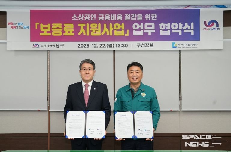스페이스뉴스 스페이스뉴스 기자 | 부산 남구는 부산신용보증재단(이사장 성동화)과 지난 12월 22일 남구청에서 소상공인 경영 안정과 민생경제 활성화를 위한 '남구 소상공인 보증료 지원사업 업무협약'을 체결했다고 밝혔다.