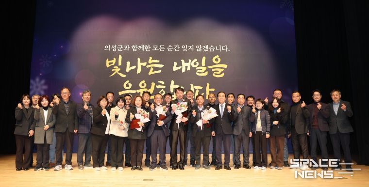 스페이스뉴스 스페이스뉴스 기자 | 의성군은 지난 22일 오전 11시 의성청소년문화의집 공연장에서 2025년 하반기 합동퇴임식을 개최했다. 이날 행사에는 김주수 의성군수를 비롯해 부서장과 직원, 퇴직자 가족 등 약 150명이 참석해 오랜 기간 군정 발전을 위해 헌신한 퇴직 공직자들의 공직 여정을 되돌아보고 그간의 노고를 격려하는 뜻깊은 시간을 가졌다.