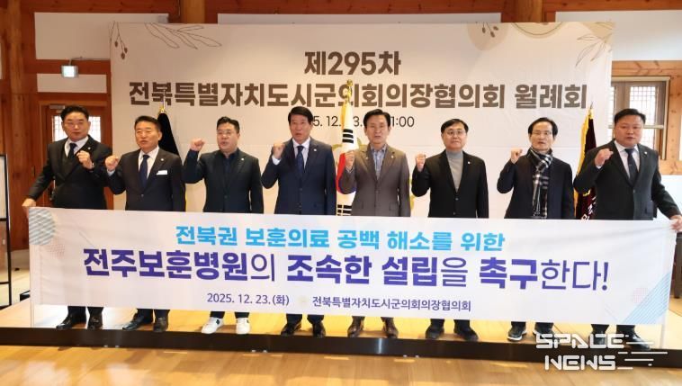 스페이스뉴스 스페이스뉴스 기자 | 전북특별자치도시군의회의장협의회는 23일 무주군의회에서 열린 제295차 월례회에서 지역 보훈대상자의 건강권 침해와 의료 사각지대 해소를 위한 보훈병원 설립을 촉구했다.