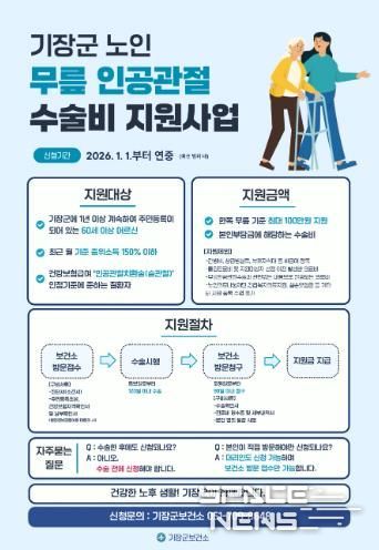 스페이스뉴스 스페이스뉴스 기자 | 기장군은 오는 2026년부터 부산시 최초로 ‘어르신 무릎인공관절 수술비 지원사업’을 확대 시행한다고 23일 밝혔다.