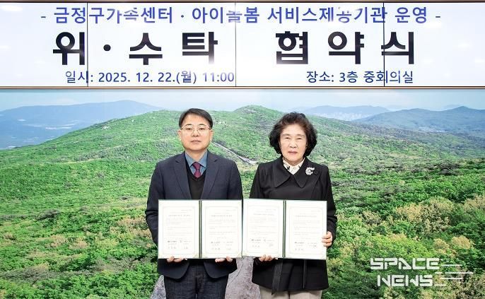 스페이스뉴스 스페이스뉴스 기자 | 부산시 금정구는 22일 오전 11시 금정구청 3층 중회의실에서 가족센터·아이돌봄 서비스제공기관 운영 위·수탁 협약식을 개최했다.