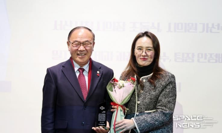 스페이스뉴스 스페이스뉴스 기자 | 서산시의회 조동식 의장이 지난 23일 서산시 번화2로 상인회로부터 감사패를 받았다.