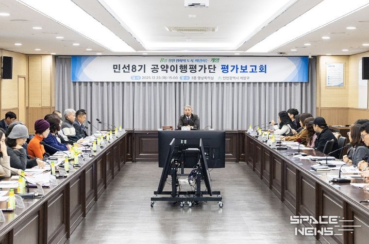스페이스뉴스 스페이스뉴스 기자 | 인천광역시 계양구는 12월 23일 영상회의실에서 ‘민선 8기 공약이행평가단 공약사업 평가보고회’를 개최했다.