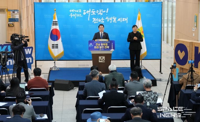스페이스뉴스 스페이스뉴스 기자 | 김영록 전라남지사는 24일 동부지역본부에서 열린 동부권 송년 기자 브리핑에서 2026년을 ‘동부권 100년 대도약의 원년’으로 선포하고 전남 미래 성장의 핵심 거점으로 육성하는 동부권 발전 전략을 발표했다.